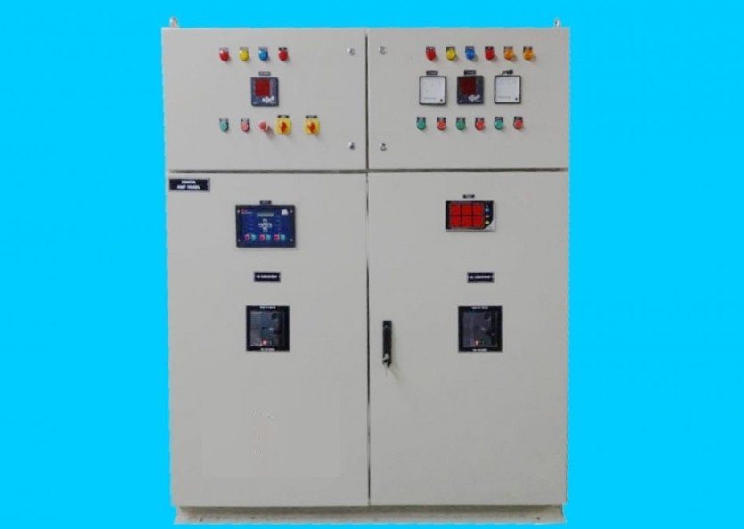 Synchronization Panel used to synchronize multiple power sources. Ensures smooth power transfer between generators and mains supply.